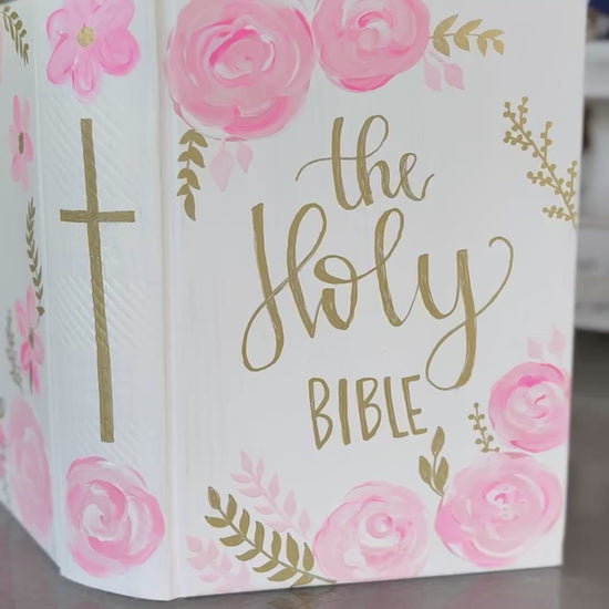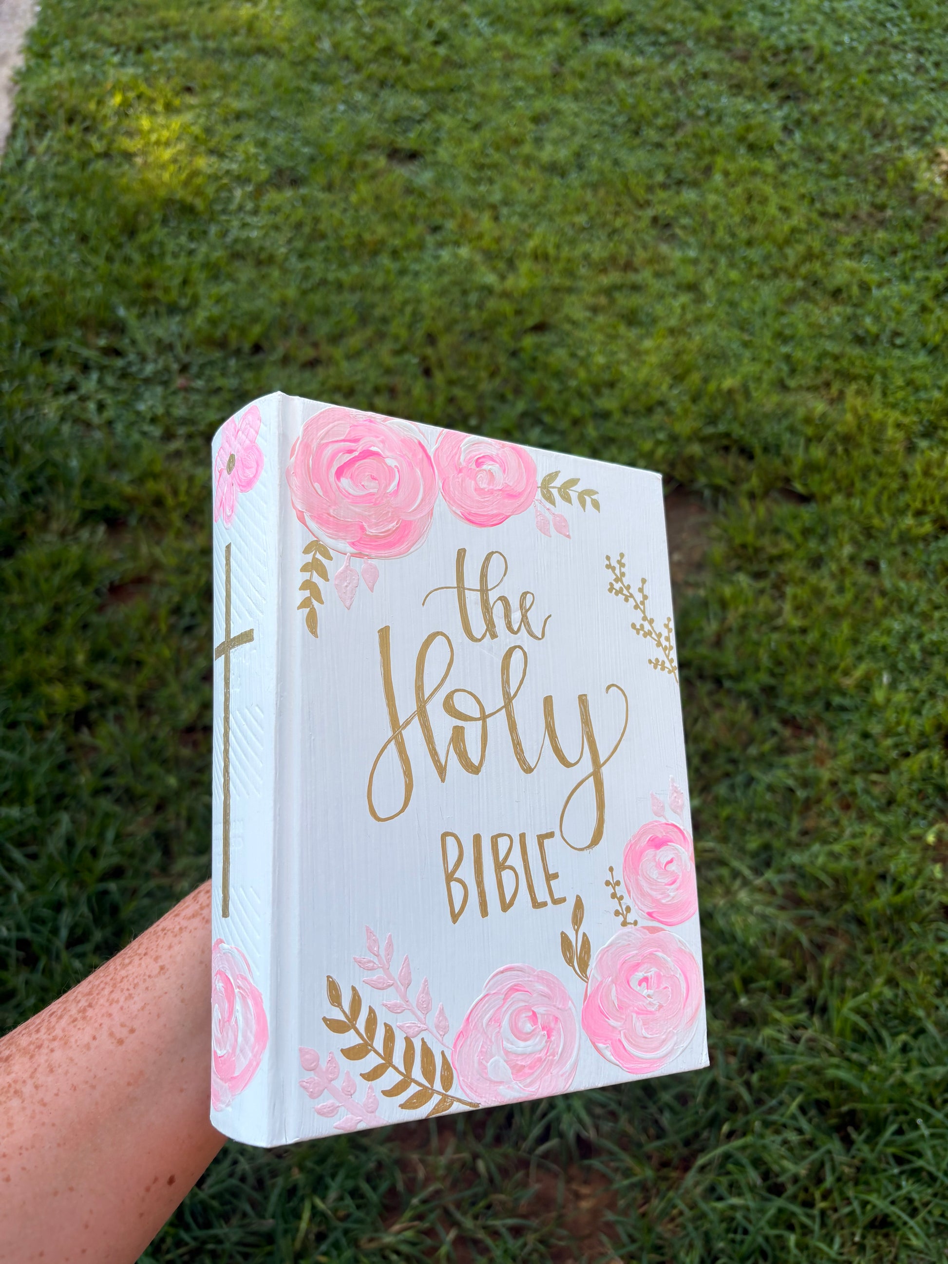 Customize a Bible to exactly how you want it! Truly hand painted with love. It is a “She Reads Truth” Bible in the Christian Standard Version (CSV) that has room for journaling. Put whichever verse you want on the back, as long as it will fit! If you have an idea of a different style, just let me know and we will get it done!