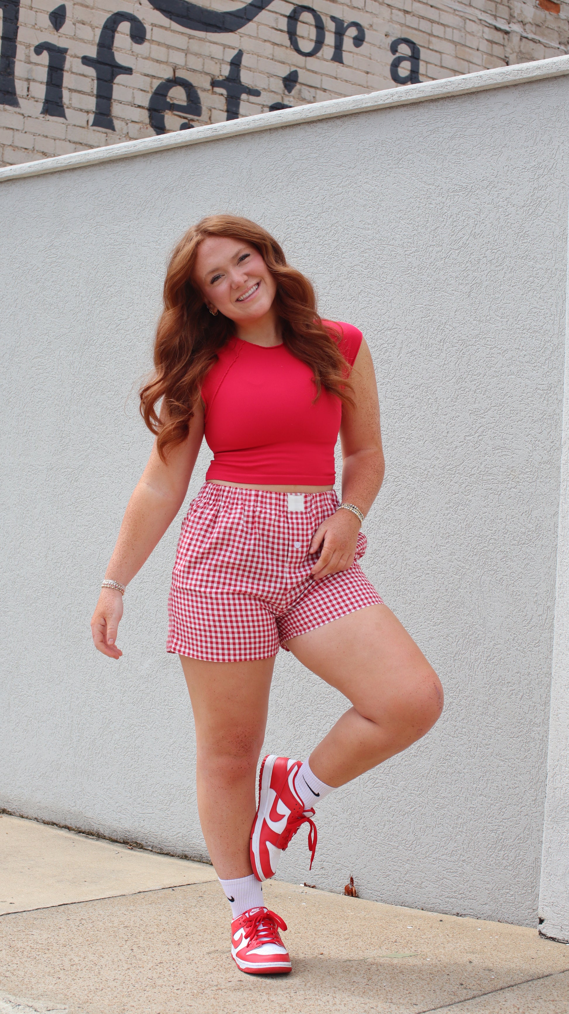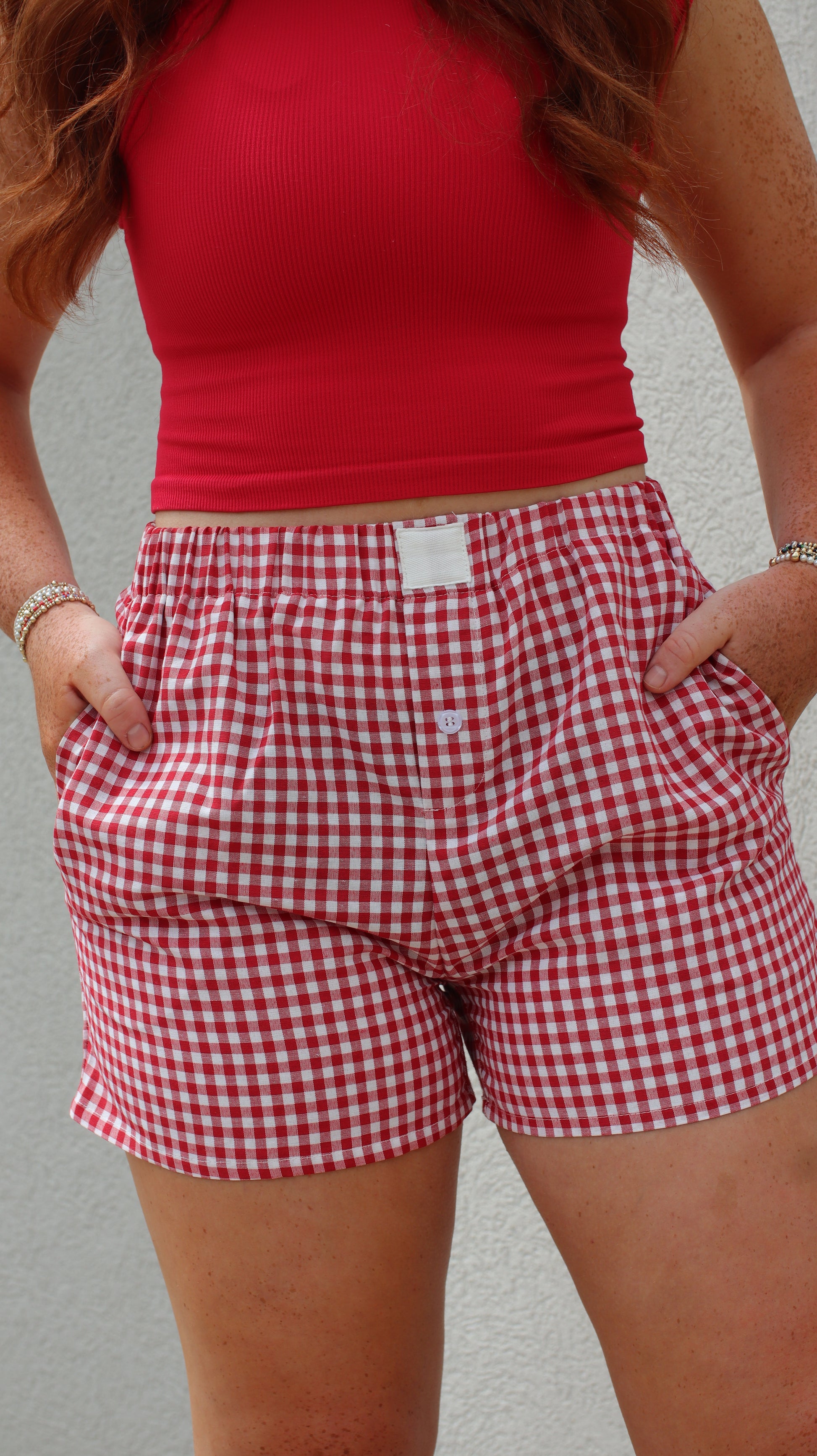 The Daisy Mae Shorts are your new go-to for sunny days. Featuring a classic gingham print, a comfy elastic waistband, and the perfect fingertip length, these shorts were made for picnic dates, porch swings, and everything in between. They are so easy to style and even easier to love. Throw them on with your favorite crop or a relaxed tee and you’re good to go.